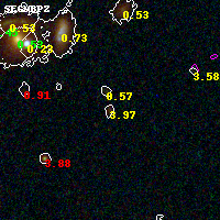 Object #2369 x,y = (2584, 3124) RA, Dec = (01:37:24.768, -8:26:44.16) = (24.35320, -8.44560) BPZ = 3.969 [0.470--4.354] type = 8.50 (SB2_B10 - SB1_B10) chisq2 = 0.90 ODDS = 0.58 z_cluster = 0.566
