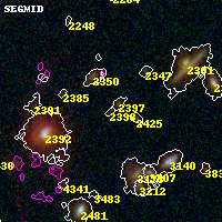 Object #2398 x,y = (1384, 3096) RA, Dec = (01:37:29.616, -8:26:45.96) = (24.37340, -8.44610) BPZ = 3.454 [0.227--3.926] type = 9.40 (SB2_B10 - SB3_B10) chisq2 = 0.82 ODDS = 0.40 z_cluster = 0.566