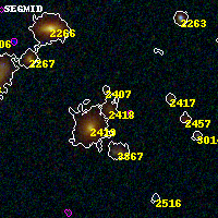 Object #2418 x,y = (3150, 3084) RA, Dec = (01:37:22.488, -8:26:46.68) = (24.34370, -8.44630) BPZ = 0.612 [0.214--0.863] type = 7.60 (SB1_B10 - Scd_B10) chisq2 = 0.15 ODDS = 0.31 z_cluster = 0.566