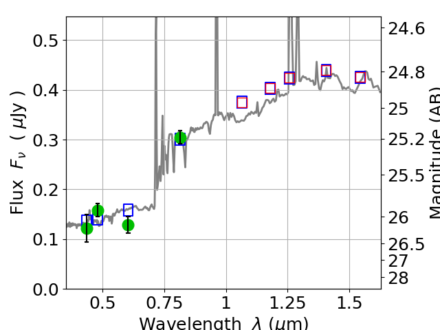 Best viewed in a wide browser window (1200 pixels or more). Download SED & P(z) plots to view larger versions.