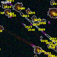 Object #2548 x,y = (2370, 2989) RA, Dec = (01:37:25.632, -8:26:52.44) = (24.35680, -8.44790) BPZ = 1.598 [0.810--2.594] type = 10.40 (SB3_B10 - SB11_A_0_l) chisq2 = 2.71 ODDS = 0.27 z_cluster = 0.566