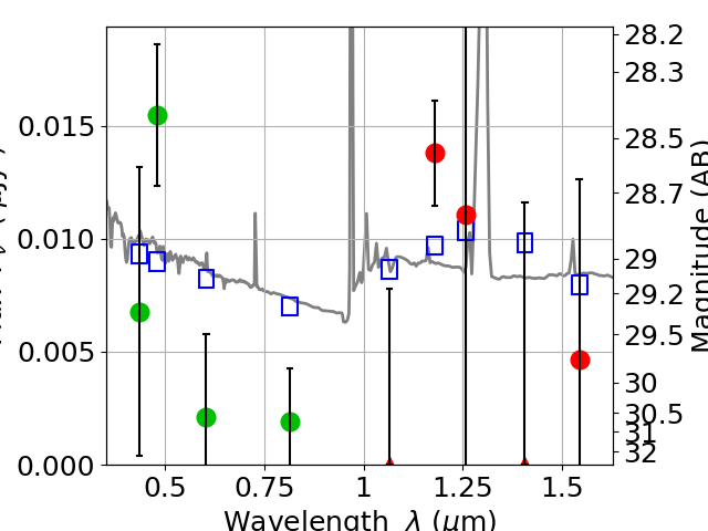 Best viewed in a wide browser window (1200 pixels or more). Download SED & P(z) plots to view larger versions.