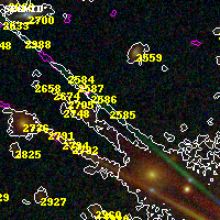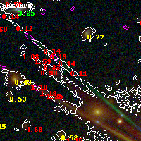 Object #2585 x,y = (2483, 2926) RA, Dec = (01:37:25.176, -8:26:56.04) = (24.35490, -8.44890) BPZ = 0.112 [0.095--0.154] type = 11.00 (SB11_A_0_l) chisq2 = 27.19 ODDS = 0.98 z_cluster = 0.566