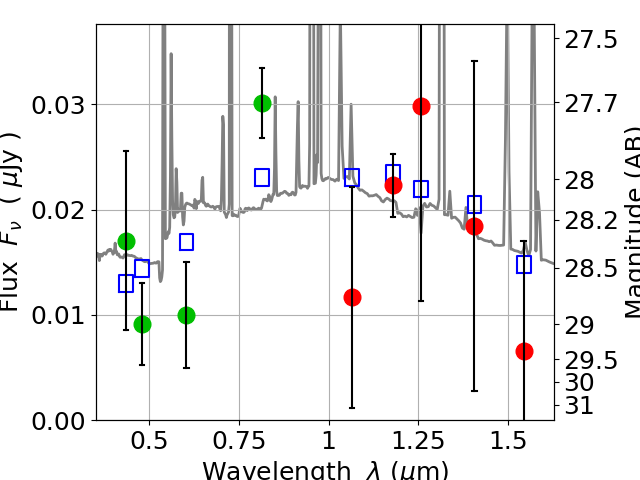 Best viewed in a wide browser window (1200 pixels or more). Download SED & P(z) plots to view larger versions.