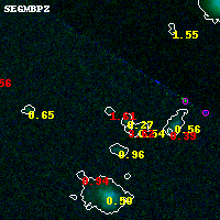 Object #273 x,y = (2269, 4565) RA, Dec = (01:37:26.040, -8:25:17.76) = (24.35850, -8.42160) BPZ = 1.615 [0.373--2.910] type = 9.80 (SB3_B10 - SB2_B10) chisq2 = 3.56 ODDS = 0.11 z_cluster = 0.566