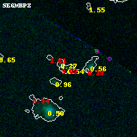 Object #279 x,y = (2295, 4549) RA, Dec = (01:37:25.944, -8:25:18.48) = (24.35810, -8.42180) BPZ = 0.544 [0.162--3.268] type = 8.70 (SB2_B10 - SB1_B10) chisq2 = 0.28 ODDS = 0.18 z_cluster = 0.566