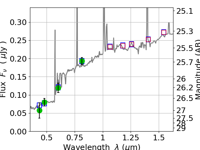 Best viewed in a wide browser window (1200 pixels or more). Download SED & P(z) plots to view larger versions.