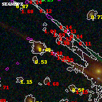 Object #2791 x,y = (2427, 2907) RA, Dec = (01:37:25.416, -8:26:57.12) = (24.35590, -8.44920) BPZ = 1.176 [0.589--3.525] type = 11.00 (SB11_A_0_l) chisq2 = 5.87 ODDS = 0.17 z_cluster = 0.566