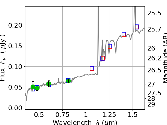 Best viewed in a wide browser window (1200 pixels or more). Download SED & P(z) plots to view larger versions.