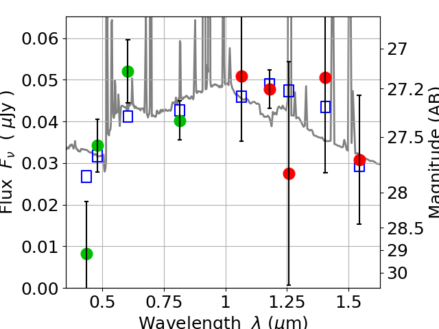 Best viewed in a wide browser window (1200 pixels or more). Download SED & P(z) plots to view larger versions.