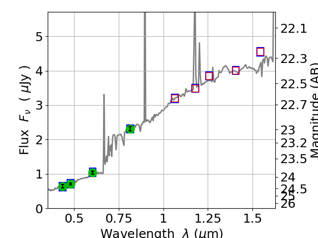 Best viewed in a wide browser window (1200 pixels or more). Download SED & P(z) plots to view larger versions.