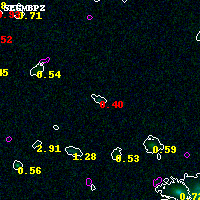 Object #2964 x,y = (3821, 2833) RA, Dec = (01:37:19.776, -8:27:01.44) = (24.33240, -8.45040) BPZ = 0.404 [0.127--3.142] type = 9.70 (SB3_B10 - SB2_B10) chisq2 = 1.41 ODDS = 0.08 z_cluster = 0.566