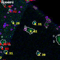 Object #3121 x,y = (4636, 2754) RA, Dec = (01:37:16.488, -8:27:06.48) = (24.31870, -8.45180) BPZ = 0.618 [0.218--3.530] type = 7.00 (Scd_B10) chisq2 = 0.00 ODDS = 0.17 z_cluster = 0.566