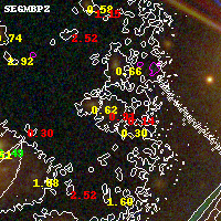 Object #3138 x,y = (2490, 2738) RA, Dec = (01:37:25.152, -8:27:07.20) = (24.35480, -8.45200) BPZ = 0.906 [0.649--0.928] type = 10.50 (SB11_A_0_l - SB3_B10) chisq2 = 2.22 ODDS = 0.38 z_cluster = 0.566