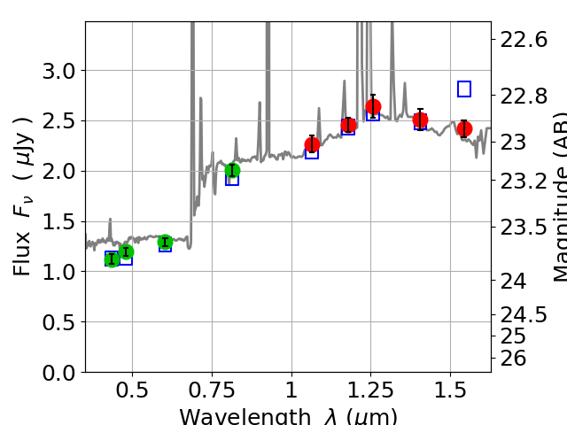 Best viewed in a wide browser window (1200 pixels or more). Download SED & P(z) plots to view larger versions.