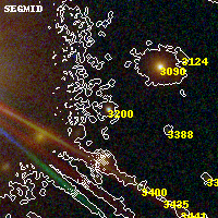 Object #3200 x,y = (2844, 2724) RA, Dec = (01:37:23.712, -8:27:08.28) = (24.34880, -8.45230) BPZ = 0.442 [0.220--0.466] type = 9.40 (SB2_B10 - SB3_B10) chisq2 = 1.51 ODDS = 0.81 z_cluster = 0.566