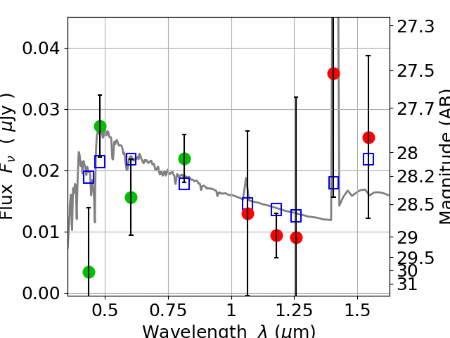 Best viewed in a wide browser window (1200 pixels or more). Download SED & P(z) plots to view larger versions.