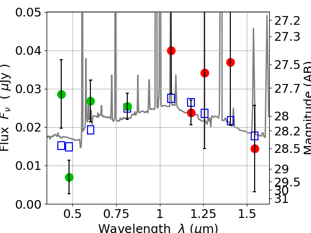 Best viewed in a wide browser window (1200 pixels or more). Download SED & P(z) plots to view larger versions.