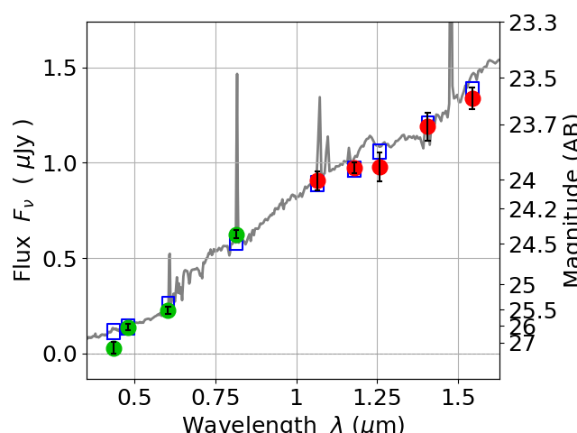 Best viewed in a wide browser window (1200 pixels or more). Download SED & P(z) plots to view larger versions.