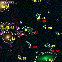 Object #3274 x,y = (3574, 2689) RA, Dec = (01:37:20.760, -8:27:10.44) = (24.33650, -8.45290) BPZ = 0.907 [0.637--1.461] type = 7.40 (Scd_B10 - SB1_B10) chisq2 = 1.02 ODDS = 0.28 z_cluster = 0.566