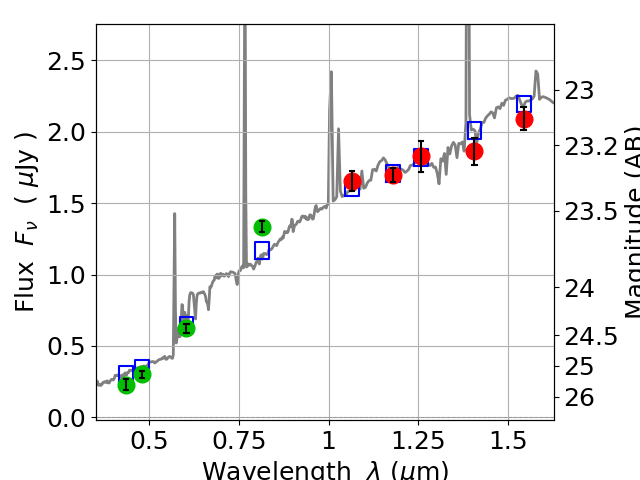 Best viewed in a wide browser window (1200 pixels or more). Download SED & P(z) plots to view larger versions.
