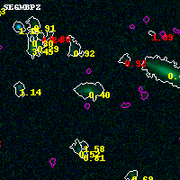 Object #3496 x,y = (3923, 2606) RA, Dec = (01:37:19.368, -8:27:15.12) = (24.33070, -8.45420) BPZ = 0.402 [0.333--0.519] type = 8.20 (SB1_B10 - SB2_B10) chisq2 = 0.49 ODDS = 0.72 z_cluster = 0.566