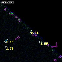 Object #370 x,y = (2827, 4447) RA, Dec = (01:37:23.784, -8:25:24.60) = (24.34910, -8.42350) BPZ = 0.314 [0.172--3.555] type = 8.60 (SB2_B10 - SB1_B10) chisq2 = 0.00 ODDS = 0.06 z_cluster = 0.566