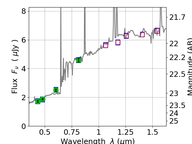 Best viewed in a wide browser window (1200 pixels or more). Download SED & P(z) plots to view larger versions.