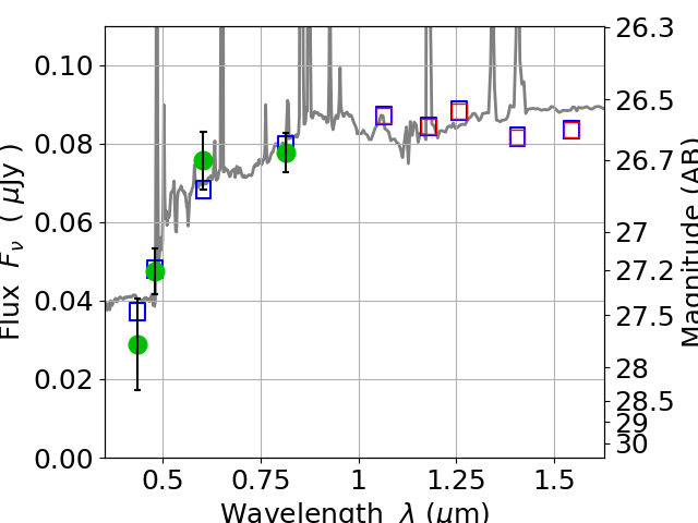 Best viewed in a wide browser window (1200 pixels or more). Download SED & P(z) plots to view larger versions.