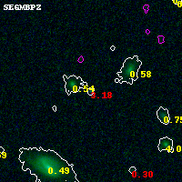 Object #3858 x,y = (3822, 2436) RA, Dec = (01:37:19.776, -8:27:25.56) = (24.33240, -8.45710) BPZ = 3.184 [0.289--3.350] type = 11.00 (SB11_A_0_l) chisq2 = 1.70 ODDS = 0.38 z_cluster = 0.566