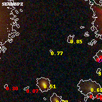 Object #3925 x,y = (2746, 2412) RA, Dec = (01:37:24.120, -8:27:27.00) = (24.35050, -8.45750) BPZ = 0.768 [0.256--5.105] type = 9.00 (SB2_B10) chisq2 = 0.79 ODDS = 0.09 z_cluster = 0.566