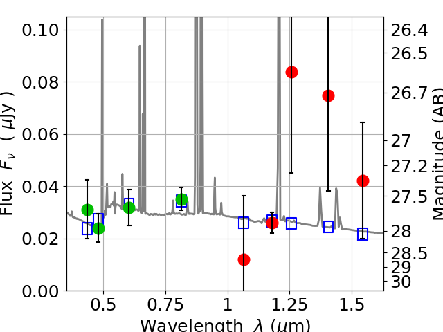 Best viewed in a wide browser window (1200 pixels or more). Download SED & P(z) plots to view larger versions.