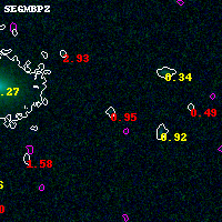 Object #4003 x,y = (966, 2378) RA, Dec = (01:37:31.320, -8:27:28.80) = (24.38050, -8.45800) BPZ = 0.950 [0.551--1.912] type = 9.40 (SB2_B10 - SB3_B10) chisq2 = 3.80 ODDS = 0.23 z_cluster = 0.566