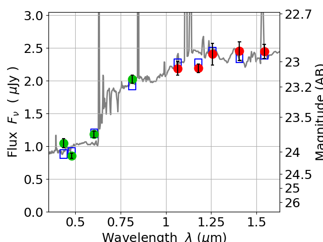 Best viewed in a wide browser window (1200 pixels or more). Download SED & P(z) plots to view larger versions.