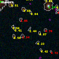 Object #4289 x,y = (3162, 2264) RA, Dec = (01:37:22.440, -8:27:35.64) = (24.34350, -8.45990) BPZ = 2.437 [0.338--2.993] type = 11.00 (SB11_A_0_l) chisq2 = 0.25 ODDS = 0.28 z_cluster = 0.566
