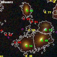 Object #4397 x,y = (2680, 2211) RA, Dec = (01:37:24.384, -8:27:38.88) = (24.35160, -8.46080) BPZ = 3.204 [0.112--3.369] type = 10.20 (SB3_B10 - SB11_A_0_l) chisq2 = 0.94 ODDS = 0.44 z_cluster = 0.566
