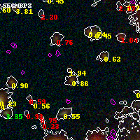 Object #4398 x,y = (1992, 2220) RA, Dec = (01:37:27.168, -8:27:38.52) = (24.36320, -8.46070) BPZ = 1.939 [0.392--3.283] type = 8.60 (SB2_B10 - SB1_B10) chisq2 = 0.88 ODDS = 0.13 z_cluster = 0.566