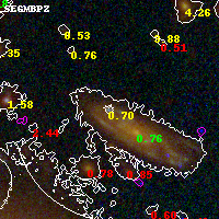 Object #4404 x,y = (2223, 2200) RA, Dec = (01:37:26.232, -8:27:39.60) = (24.35930, -8.46100) BPZ = 0.698 [0.504--0.812] type = 9.50 (SB3_B10 - SB2_B10) chisq2 = 0.17 ODDS = 0.83 z_cluster = 0.566