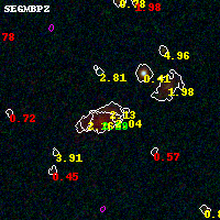 Object #4453 x,y = (3326, 2193) RA, Dec = (01:37:21.768, -8:27:39.96) = (24.34070, -8.46110) BPZ = 2.128 [1.952--2.424] type = 7.50 (SB1_B10 - Scd_B10) chisq2 = 0.33 ODDS = 0.67 z_cluster = 0.566