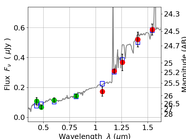 Best viewed in a wide browser window (1200 pixels or more). Download SED & P(z) plots to view larger versions.