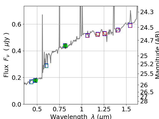 Best viewed in a wide browser window (1200 pixels or more). Download SED & P(z) plots to view larger versions.
