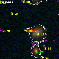 Object #4546 x,y = (3562, 2143) RA, Dec = (01:37:20.832, -8:27:42.84) = (24.33680, -8.46190) BPZ = 0.760 [0.147--3.345] type = 10.20 (SB3_B10 - SB11_A_0_l) chisq2 = 0.11 ODDS = 0.08 z_cluster = 0.566