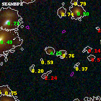 Object #4551 x,y = (2824, 2152) RA, Dec = (01:37:23.808, -8:27:42.48) = (24.34920, -8.46180) BPZ = 4.248 [4.082--4.411] type = 8.00 (SB1_B10) chisq2 = 0.15 ODDS = 0.99 z_cluster = 0.566