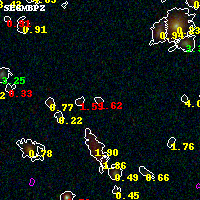 Object #4653 x,y = (1815, 2101) RA, Dec = (01:37:27.888, -8:27:45.36) = (24.36620, -8.46260) BPZ = 1.625 [0.638--2.484] type = 9.70 (SB3_B10 - SB2_B10) chisq2 = 1.45 ODDS = 0.19 z_cluster = 0.566