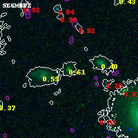 Object #4678 x,y = (4132, 2127) RA, Dec = (01:37:18.528, -8:27:43.92) = (24.32720, -8.46220) BPZ = 0.610 [0.505--0.878] type = 5.70 (Sbc_B10 - ES0_B10) chisq2 = 0.00 ODDS = 0.60 z_cluster = 0.566