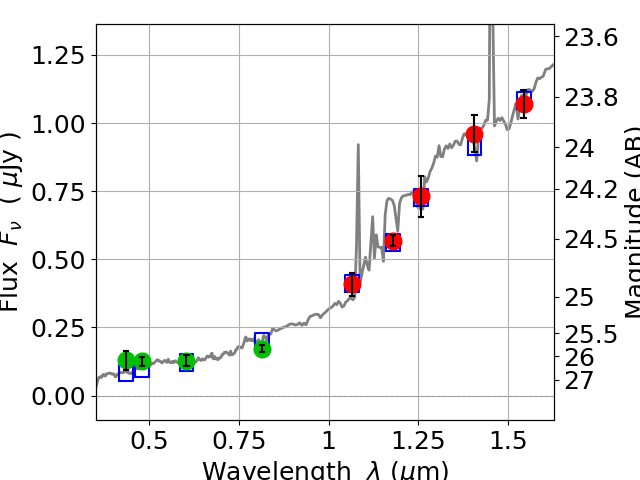 Best viewed in a wide browser window (1200 pixels or more). Download SED & P(z) plots to view larger versions.