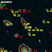Object #4700 x,y = (1819, 2041) RA, Dec = (01:37:27.864, -8:27:49.32) = (24.36610, -8.46370) BPZ = 1.860 [1.312--2.366] type = 7.40 (Scd_B10 - SB1_B10) chisq2 = 0.43 ODDS = 0.35 z_cluster = 0.566