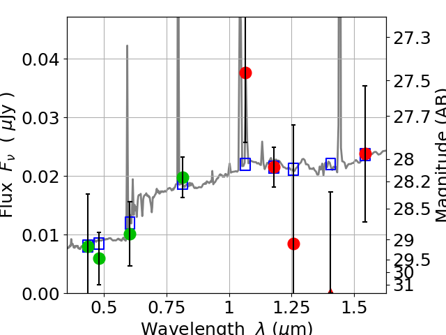 Best viewed in a wide browser window (1200 pixels or more). Download SED & P(z) plots to view larger versions.