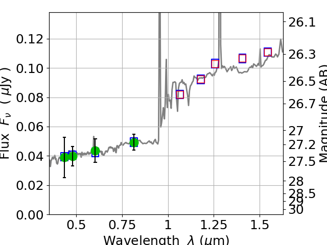 Best viewed in a wide browser window (1200 pixels or more). Download SED & P(z) plots to view larger versions.