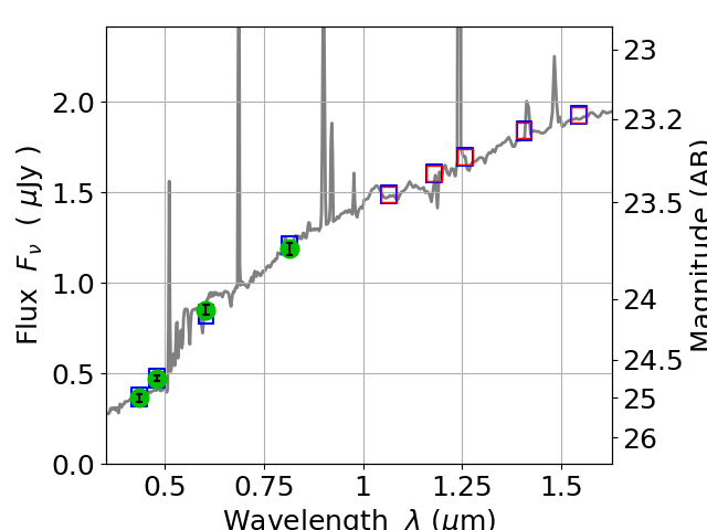 Best viewed in a wide browser window (1200 pixels or more). Download SED & P(z) plots to view larger versions.